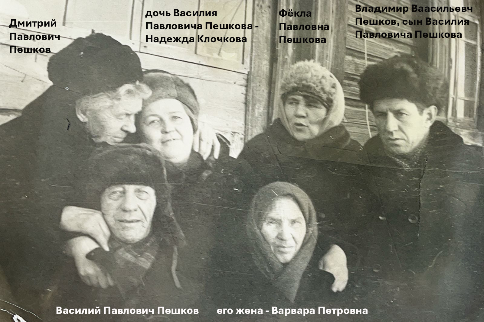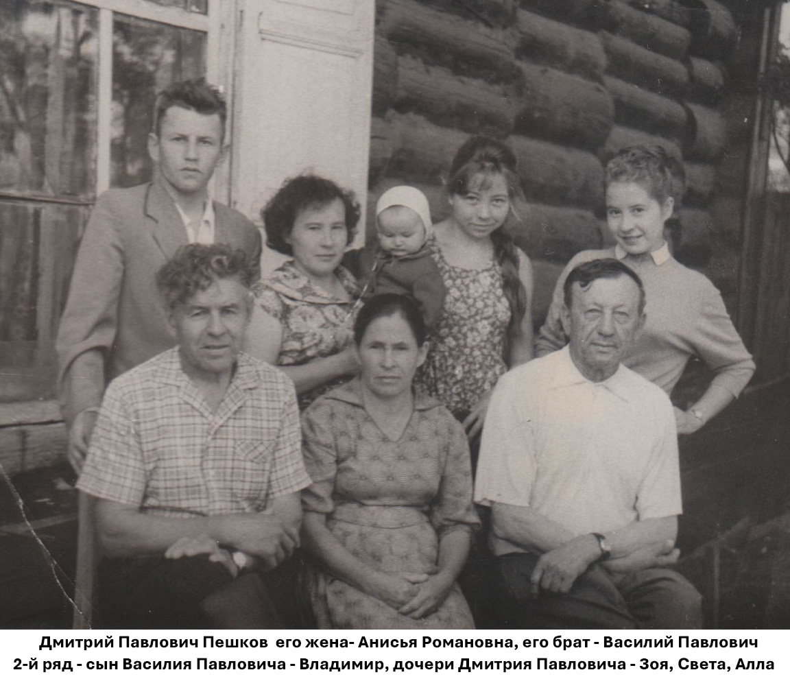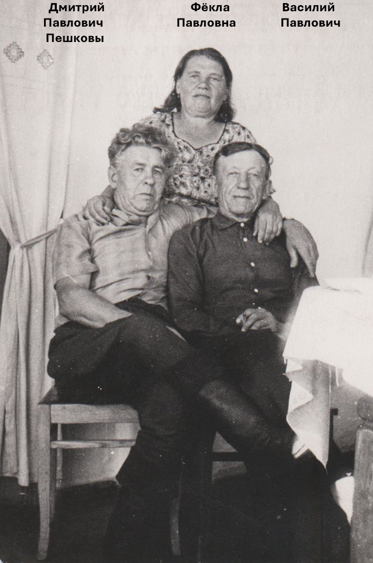 У Анисьи Романовны девичья фамилия – Пешкова. Дмитрий Павлович и Анисья Романовна родом из поселка Пешково Забайкальского края (GPS: 51.824223, 116.448107).