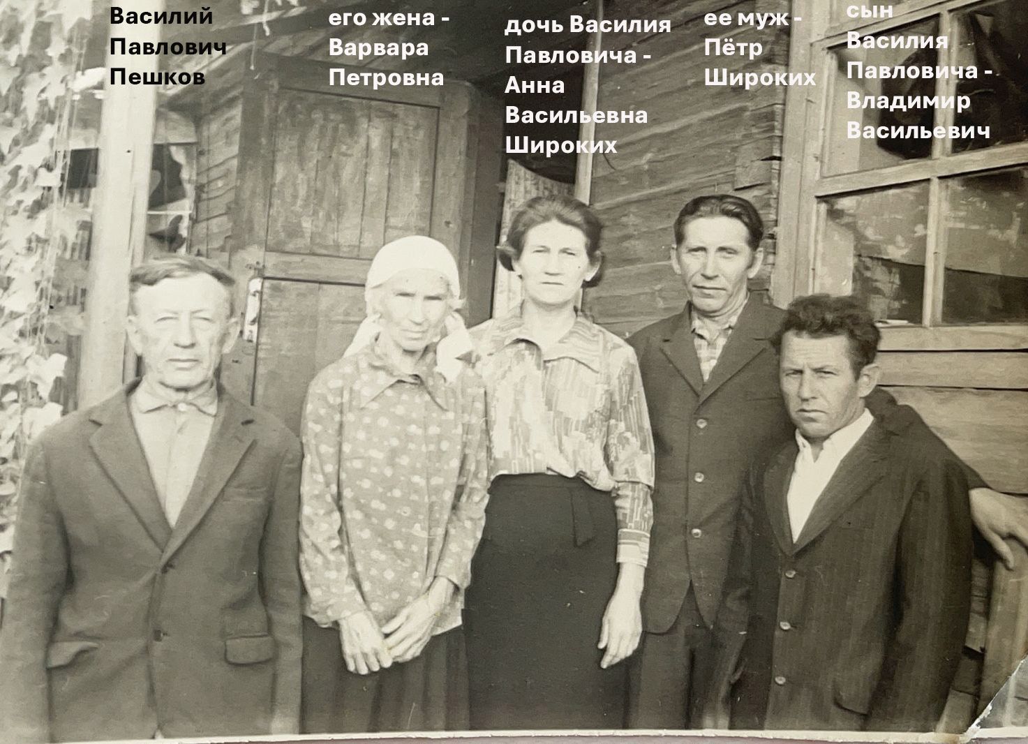 В этом хозяйстве проживали жена Пешкова Павла Семеновича – Параскева Кирилловна (45 лет), его дети – Василий (22 года), Соломонида (18 лет), Дмитрий (15 лет), Евдокия (11 лет), Фекла (8 лет).